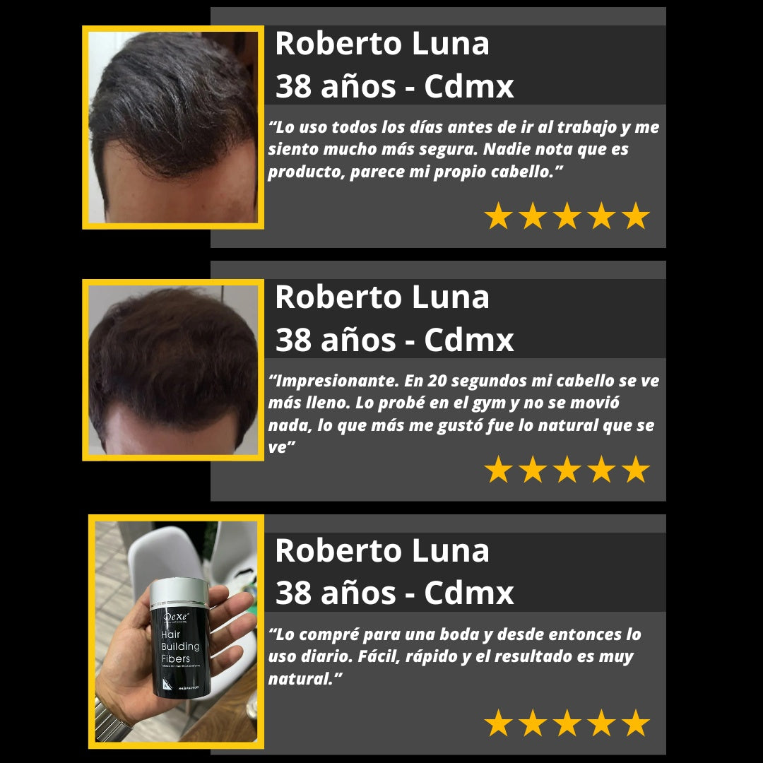 Con DexerHair™ recuperas volumen al instante, sin que nadie note que lo usas, sintiéndote seguro en cualquier situación. Solución inmediata y asequible que puedes usar a diario sin riesgos ni efectos secundarios.