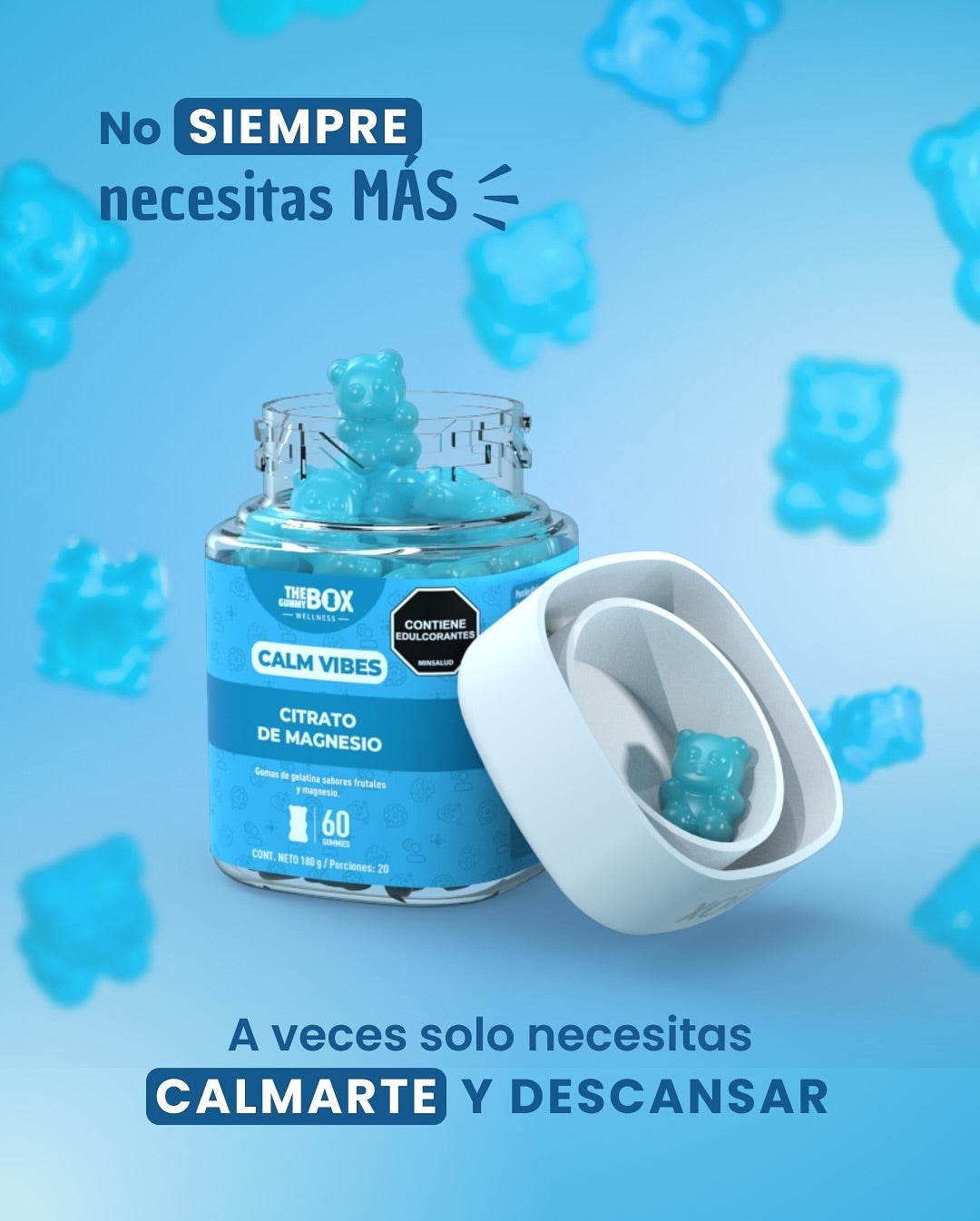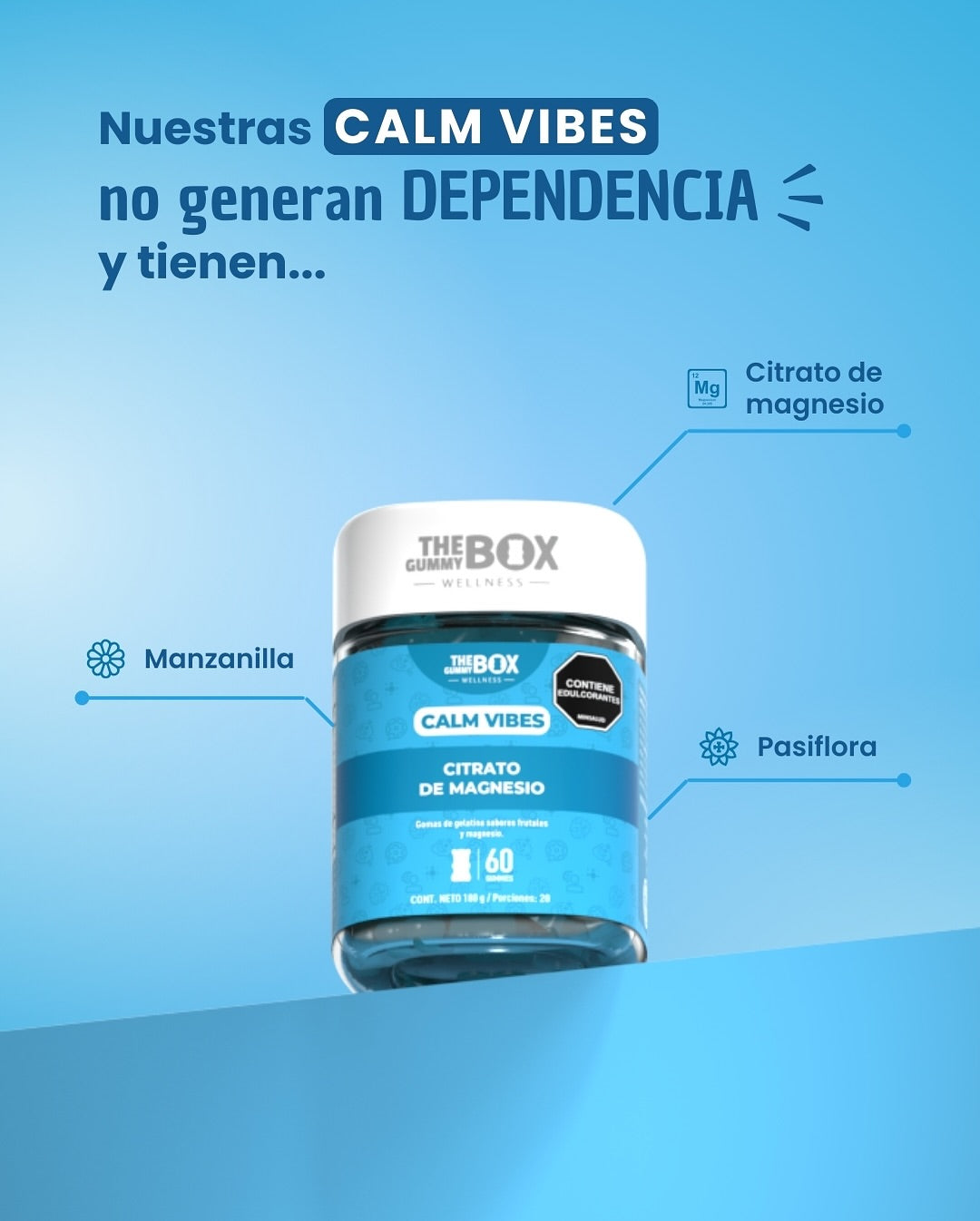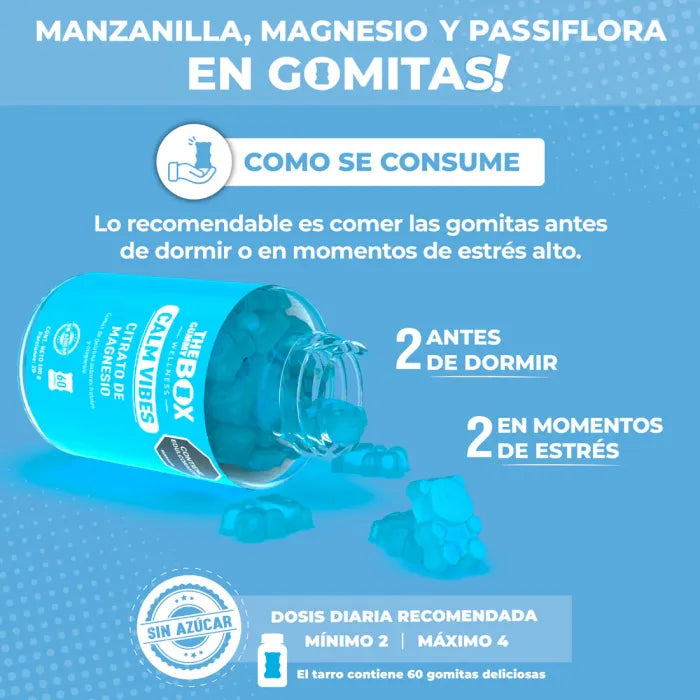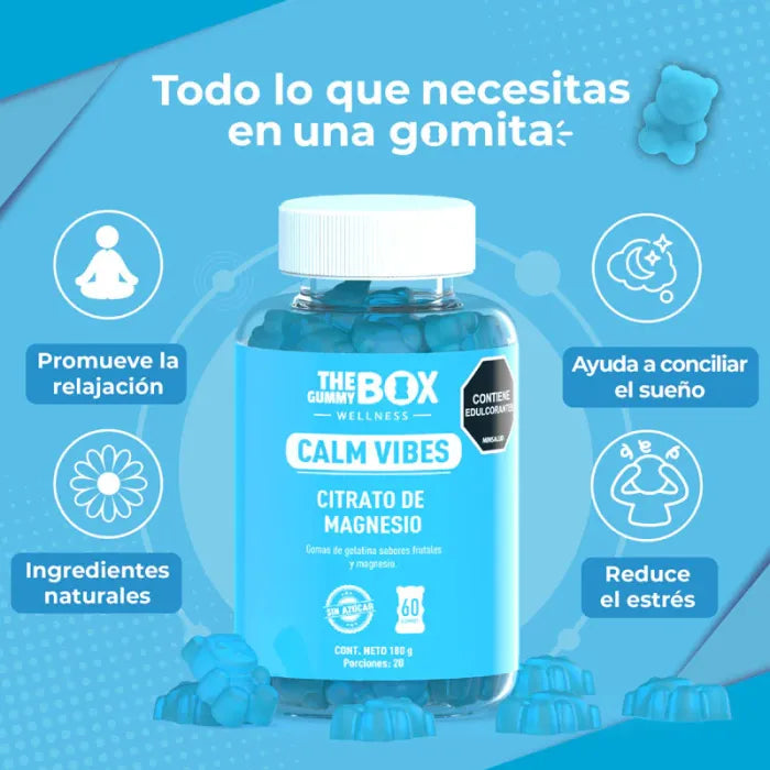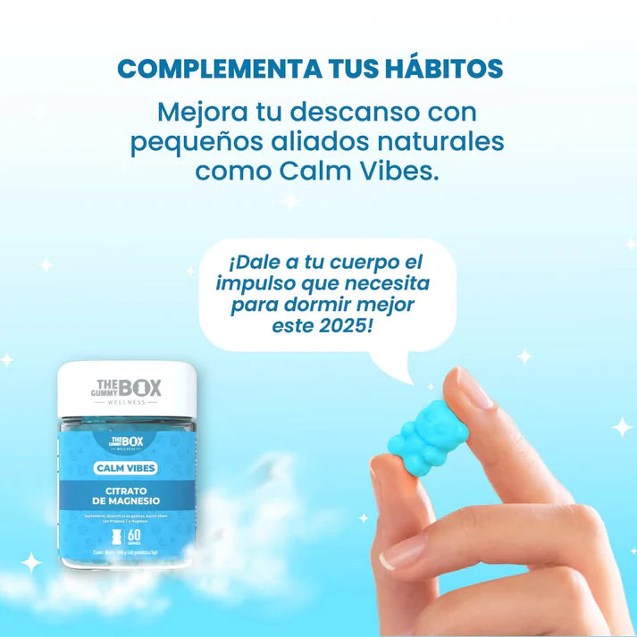 Calm Vibes™ es la solución natural que ayuda a relajar tu cuerpo y mente, mejorar tu descanso y recuperar tu paz interior.