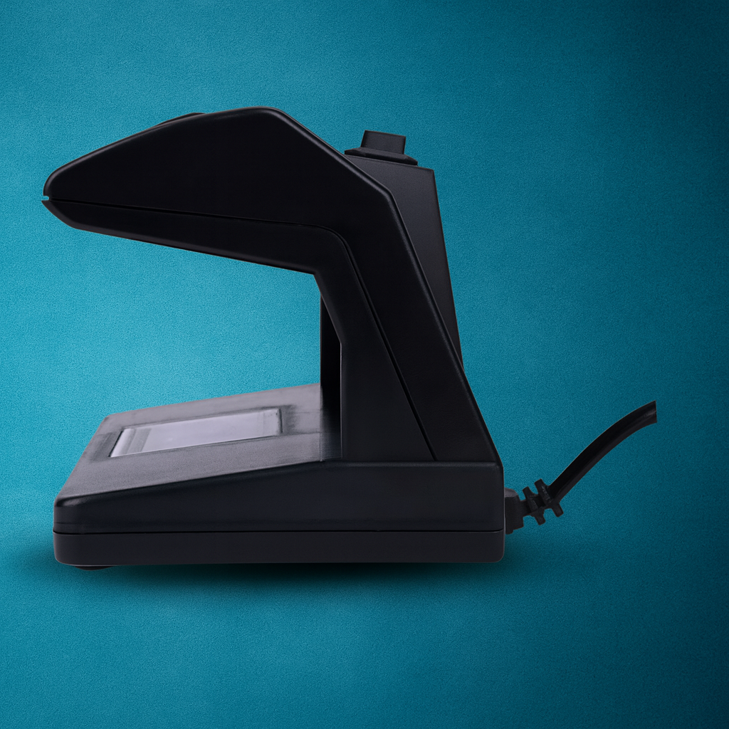 Detecta billetes falsos y tarjetas fraudulentas.